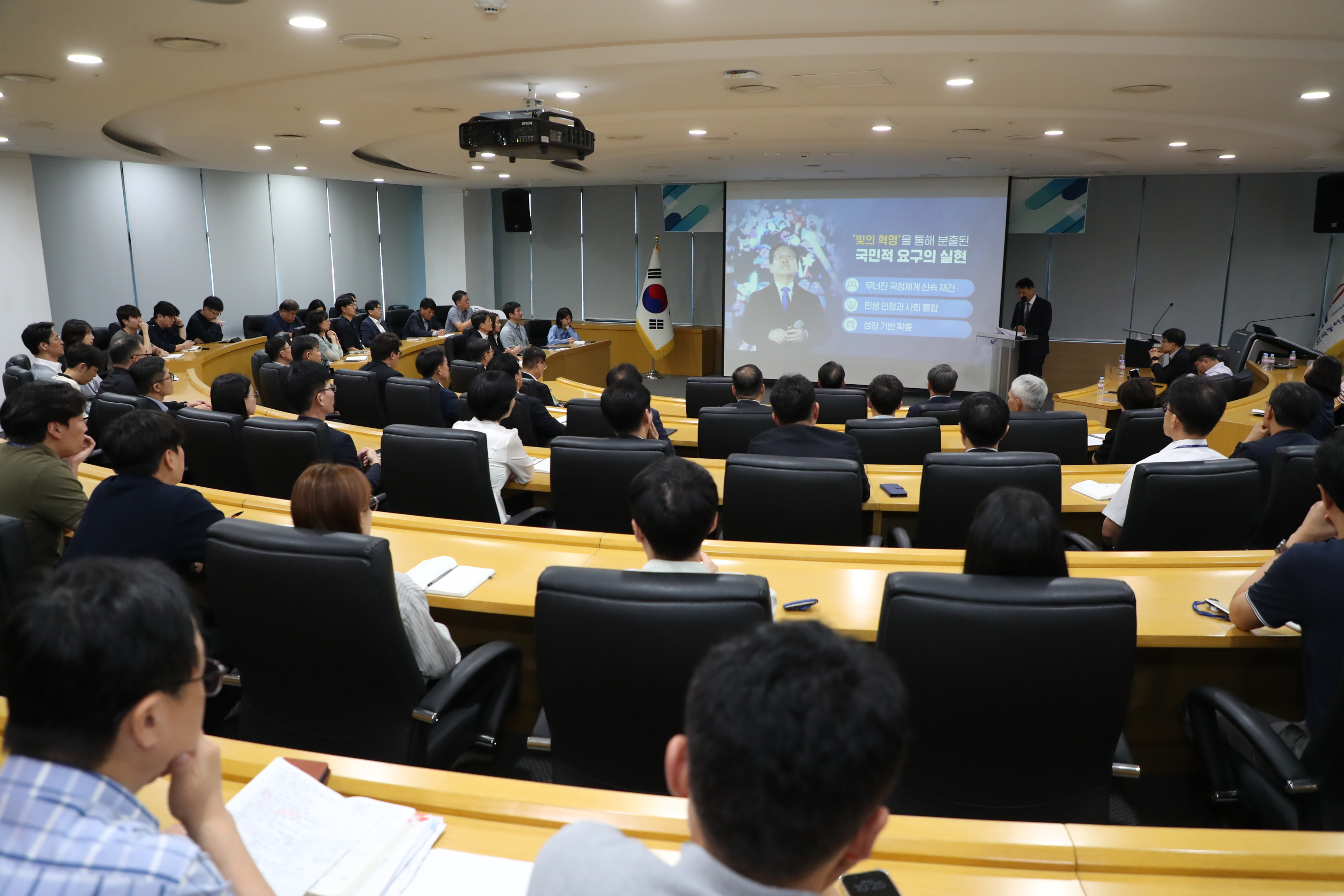 2025. 10. 1. 나주 본사 무궁화 2실에서 공사 상임이사와 본사 부서장 및 부장 관심직원들 60여명이 참석한 가운데 새정부 농정방향 및 국정과제의 이해도 제고를 위한 농식품부 윤원습 농업정책관이 특강을 진행했다.