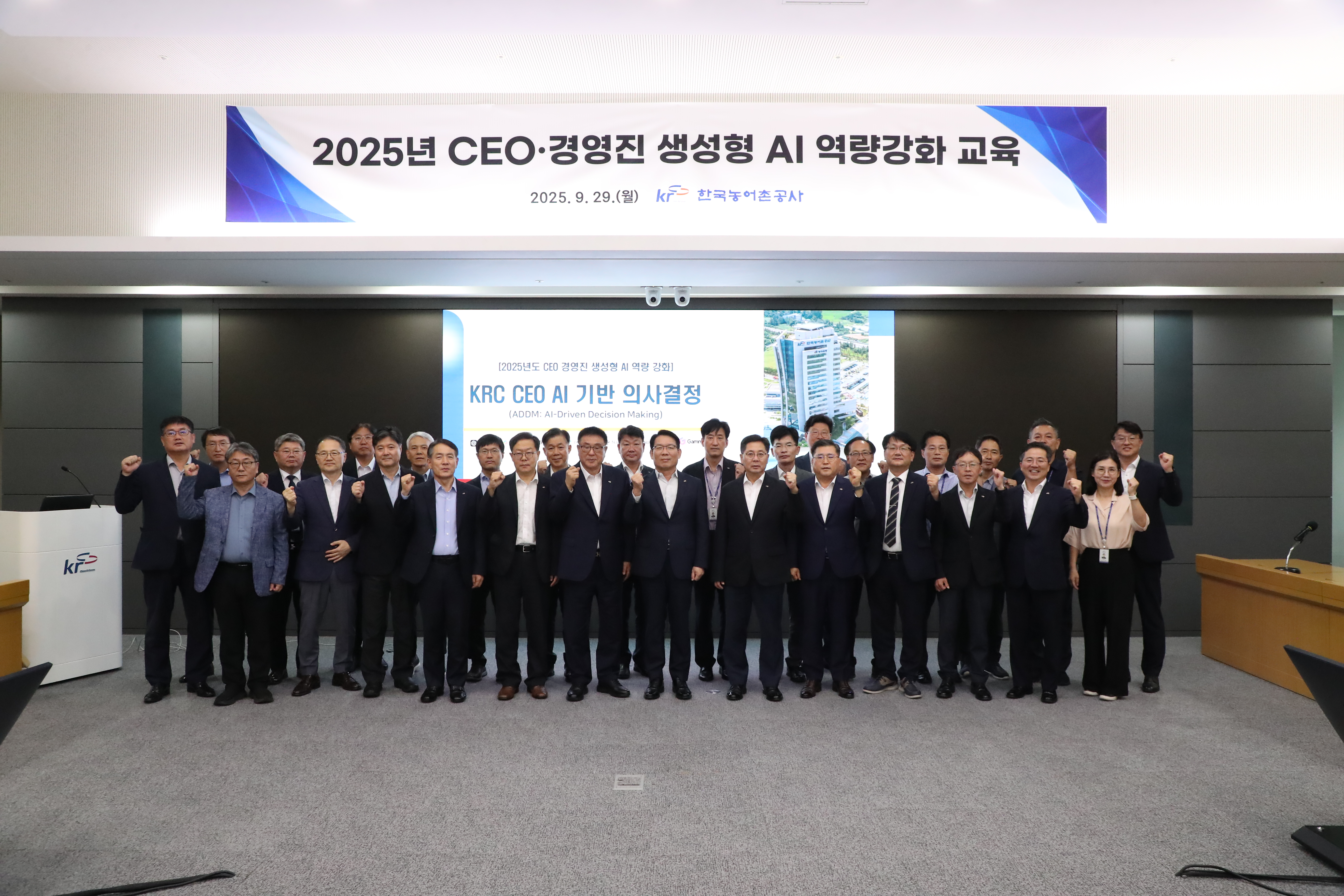 2025. 9. 29. 나주 본사 무궁화 1실에서 공사 김인중 사장과 감사, 상임이사, 부서장 40여명이 참석한 가운데 경영진에 대한 생성형 AI 트랜드 이해도 제고를 위해 경영에 활용하는 AI교육을 실시 했다.