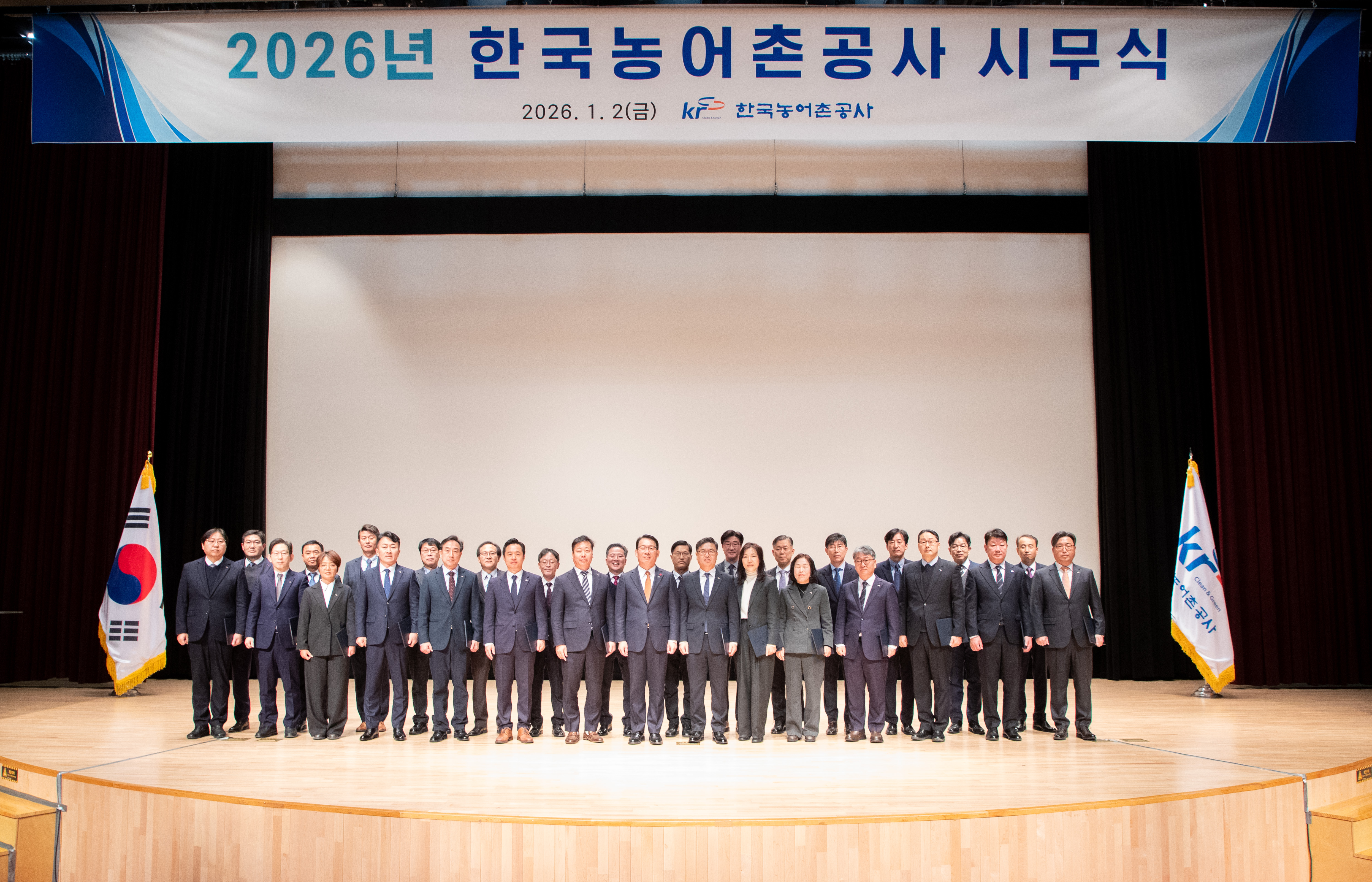전략경영 2026-01-26 2026년 전국 부서장 토론회2026. 1. 26. 충북 오송 오스코에서 공사 김인중 사장과 이사진 및 전국 부서장 200여명이 참석한 가운데 안전실천결의와 주요업무협업을 위해 전국 부서장 회의가 열렸다.